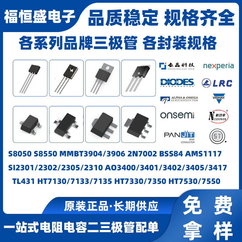 常用封裝:SOT-23 SOT-89 (824) TO-220 (469) SOT-223 TO-92 常用品牌:長電長晶 LRC 新潔能 三極管 晶體管
